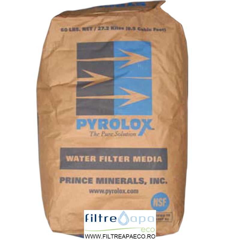 Acest material granular este creat în Statele Unite din roci care conțin dioxid de mangan sub formă de minerale. Marca este înregistrată oficial. Producătorul garantează păstrarea parametrilor comuni pentru fiecare lot. El recomandă să cumpărați și să utilizați încărcarea Pyrolox pentru a converti fierul în fier în stare insolubilă. Un rezultat util similar poate fi obținut prin îndepărtarea impurităților de fier, hidrogen sulfurat și mangan din fluxul de apă.