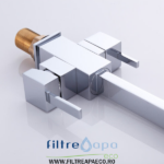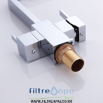 Bateria, Filtreapaeco 101-CHROME este dotată cu trei căi și are un elegant finisaj negru. Această inovație îți oferă posibilitatea de a consuma apă purificată separat de cea nefiltrată. Acest aspect este deosebit de util, deoarece asigură că apa filtrată ajunge în paharul tău printr-o cale complet sterilă. Bateria dispune de două robinete separate și, de asemenea, de două căi distincte de curgere a apei. Robinetul din stânga este destinat apei filtrate, în timp ce cel din dreapta controlează debitul de apă caldă și rece.