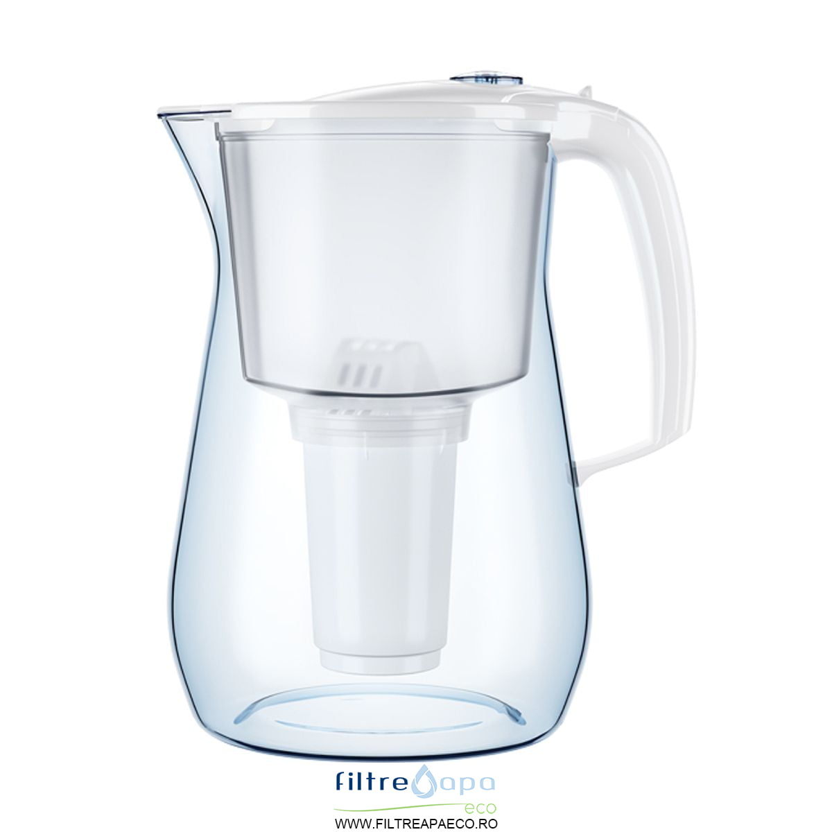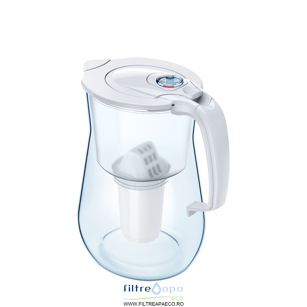 Cana cu cel mai mare volum de filtrare, capac FLIP-FLOP care permite umplerea canii fara sa scoateti capacul si indicator care ne atentioneaza cand trebuie schimbat cartusul.