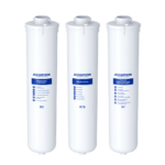 Set de cartuse de înlocuire pentru purificare profundă. În condiții de apă dură, îndeplinește pe deplin funcția de purificare în profunzime de impurități nocive, dar nu reduce mineralizarea.
